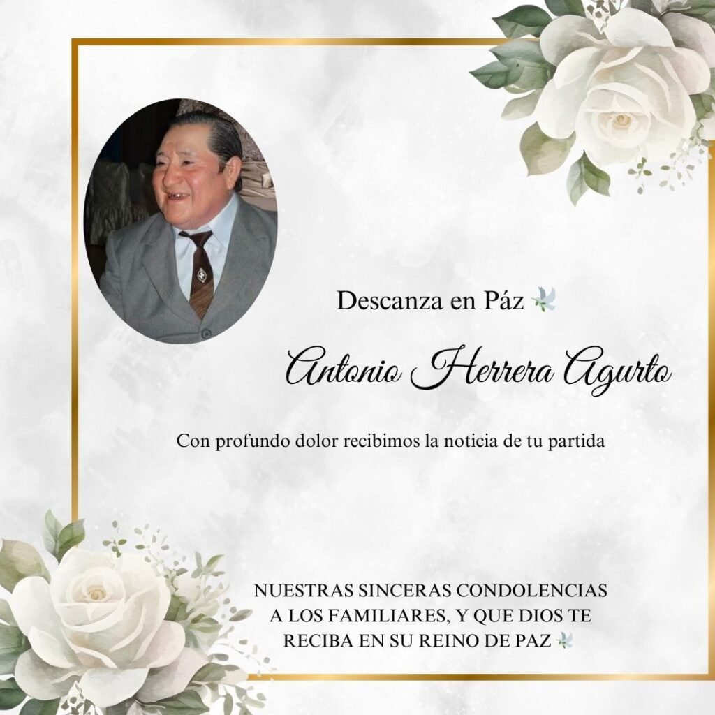 Esta tarde, los familiares de quien en vida fue Antonio Herrera Agurto, dieron a conocer su sensible fallecimiento en el distrito de Huaura.