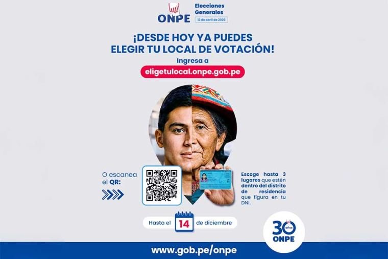 La Oficina Nacional de Procesos Electorales (ONPE) habilitó, desde el domingo 23 de noviembre de 2025, la plataforma Elige tu local de votación (ETLV) para las Elecciones Generales 2026, la cual permite a los electores elegir hasta tres opciones cercanas a su domicilio.
