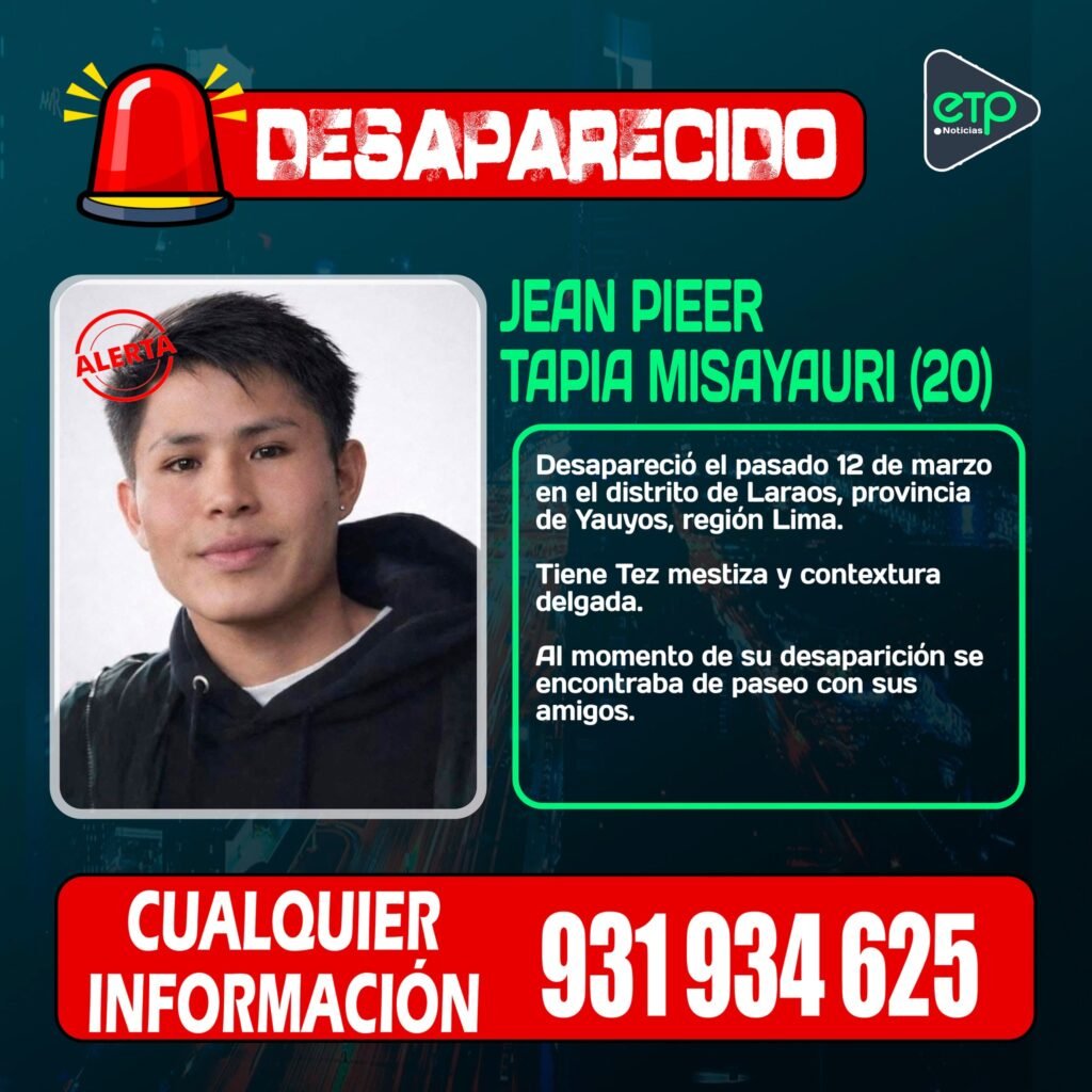 Desde ETP Noticias, extendemos nuestras más sentidas condolencias a los familiares y amigos de Jean Pieer Tapia en este momento de profundo dolor. Descansa en paz.