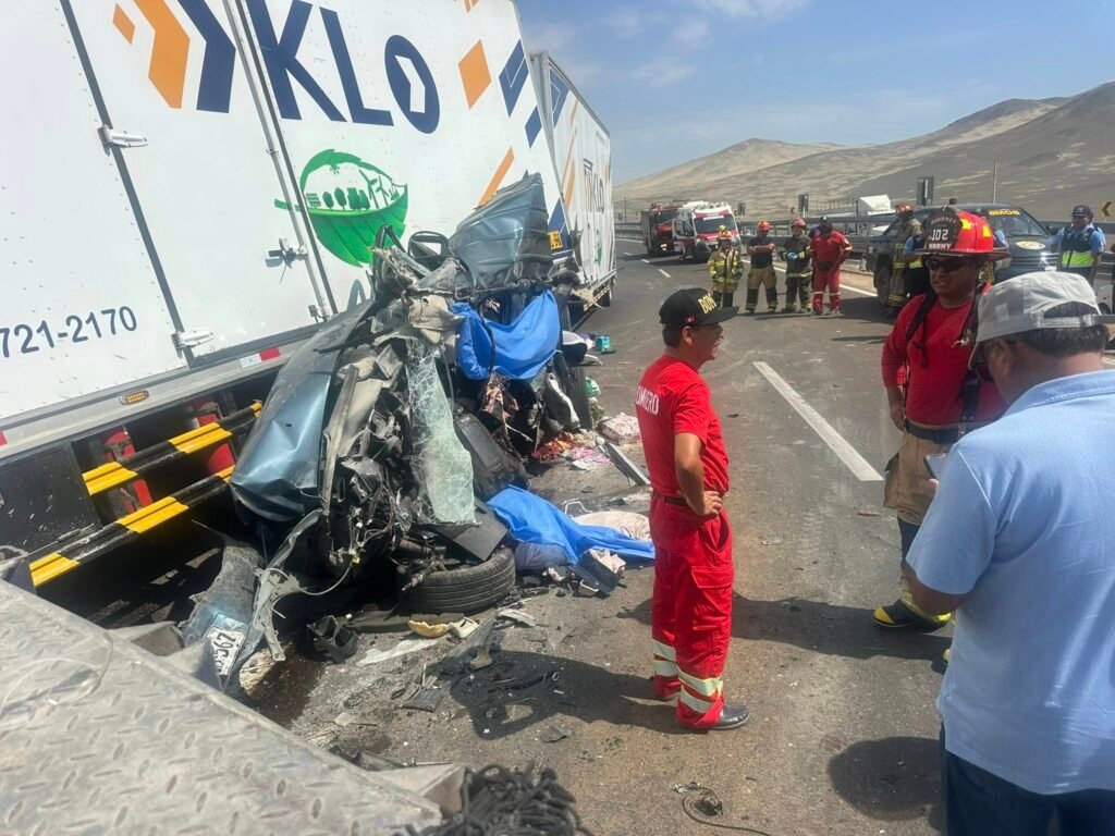 El siniestro se produjo en una zona de doble vía considerada peligrosa. Un camión cargado de pota se averió y quedó detenido en el carril izquierdo. Minutos después, un vehículo de carga pesada que transportaba cemento perdió el control, atrapando a la miniván familiar entre dos tráileres. La fuerza del impacto destruyó por completo la unidad donde viajaban las víctimas, quienes se desplazaban de sur a norte para celebrar la noche festiva.