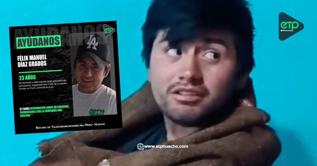 Félix Manuel Díaz Grados, reportado como desaparecido, fue hallado por pobladores en el distrito de Andajes, provincia de Oyón. Según indicaron, el joven fue hallado desorientado en el distrito y al conocer que estaba desaparecido le dieron abrigo y comida hasta la llegada de sus familiares.