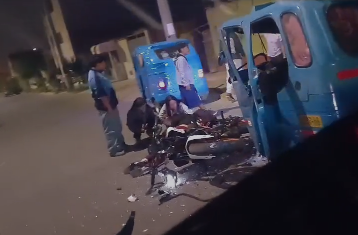Esta mañana en el sector de la calle Manuel Oyola, distrito de Santa María. El choque entre la mototaxi de placa 1327-8B con número de empadronamiento municipal 4827 y la moto lineal de placa 8851-SW dejó herido y tendido en la pista al conductor del vehículo de dos ruedas, los vecinos brindaron apoyo y avisaron a las autoridades, con presencia del SAMU se realizó el traslado al hospital. Mientras que en el interior de la mototaxi se observaban latas de cervezas y un trapo con manchas de sangre, pero el chofer no estaba. La policía inició las investigaciones para conocer la responsabilidad de ambos conductores.