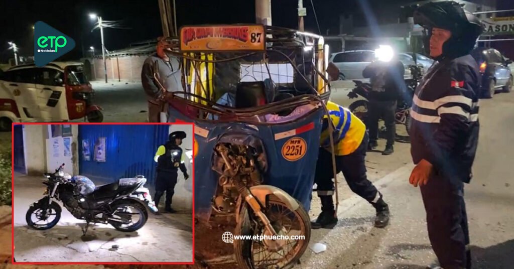 Un aparatoso accidente de tránsito se registró en la avenida 3 de Octubre, en el centro poblado de Retes (Huaral), donde una mototaxi perteneciente a una asociación Inversiones y una motocicleta colisionaron violentamente, dejando como saldo dos personas heridas. El personal de Serenazgo acudió de inmediato al lugar del siniestro para brindar auxilio a los afectados, quienes fueron trasladados de emergencia al Hospital de Huaral a fin de recibir atención médica oportuna. Ambos conductores resultaron con diversas lesiones producto del impacto, mientras que las unidades involucradas quedaron con daños materiales significativos. Las autoridades vienen investigando las causas del accidente.