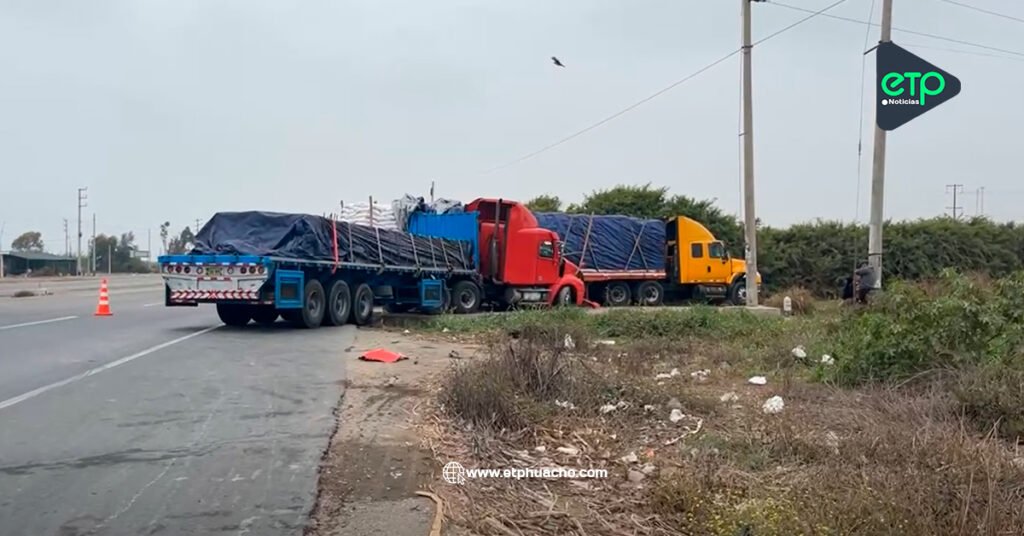 El hecho se registra a la altura del Km. 173 de la panamericana norte. Según información preliminar, el tráiler color amarillo de placa C31-811 cargado de afrecho ya había ingresado hacia el camino que lleva a los sectores de Rosario y San José zonas ganaderas, el otro tráiler color rojo de placa F0V-844 que también avanzaba en sentido sur a norte se visualiza que también ingreso a dicho camino pero se empotró con el primer tráiler. El hecho es materia de investigación por parte de la policía, el pase vehicular estaba bloqueado, se comenzaron a realizar trasbordo de la mercadería a otro tráiler para poder mover las unidades, el tráiler rojo quedó con daños materiales sobre todo en la cabina del conductor que gracias a Dios salió ilesos, solo con algunos golpes.