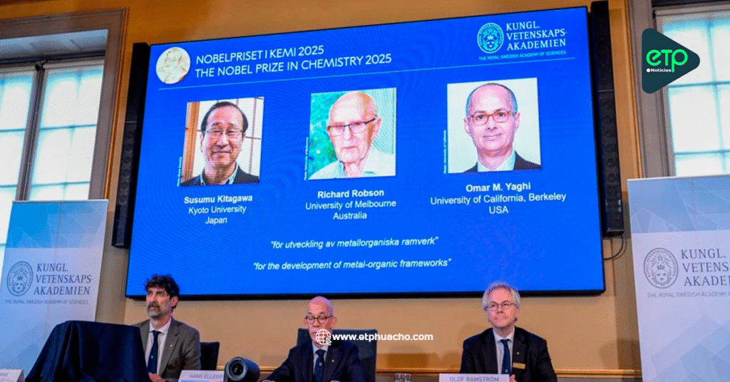 Los ganadores crearon materiales con aplicaciones clave para el medio ambiente y la industria La Real Academia de las Ciencias Sueca otorgó el Premio Nobel de Química 2025 al japonés Susumu Kitagawa, al británico Richard Robson y al jordano Omar M. Yaghi, en reconocimiento a su trabajo pionero en el desarrollo de estructuras metal-orgánicas (MOF), un nuevo tipo de arquitectura molecular. Estas estructuras contienen amplias cavidades que permiten que las moléculas entren y salgan libremente, lo que ha permitido aplicaciones innovadoras como la recolección de agua en zonas desérticas, la eliminación de contaminantes, la captura de dióxido de carbono y el almacenamiento de hidrógeno. Gracias a estos avances, los galardonados han abierto nuevas posibilidades para enfrentar desafíos globales. Su descubrimiento ha impulsado la creación de múltiples MOF con funciones diversas, que actualmente comienzan a producirse a gran escala para su uso industrial. Por ejemplo, la industria electrónica utiliza estos materiales para contener gases tóxicos en la fabricación de semiconductores, mientras que otros MOF pueden descomponer sustancias nocivas, incluidas aquellas usadas como armas químicas. También se están probando en plantas industriales para capturar CO₂, contribuyendo así a la reducción de emisiones contaminantes. Los expertos consideran que las estructuras metal-orgánicas tienen un potencial tan grande que podrían convertirse en el material del siglo XXI, por sus propiedades únicas y su capacidad de adaptación.