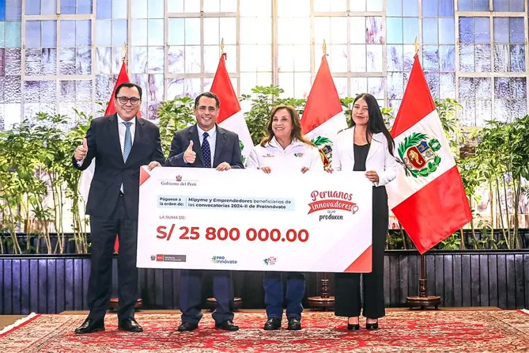 En un acto oficial encabezado por la presidenta Dina Boluarte, el Gobierno del Perú reafirmó su compromiso con el desarrollo económico y productivo del país al entregar más de 25 millones de soles en financiamiento directo a más de 330 emprendedores, ganadores del concurso nacional organizado por el Ministerio de la Producción (Produce). Apoyo a la innovación y el crecimiento empresarial La entrega de estos recursos forma parte del programa ProInnóvate, iniciativa del Ministerio de la Producción que busca fortalecer las capacidades de innovación, digitalización, sostenibilidad y escalamiento de las micro, pequeñas y medianas empresas (mipymes) a nivel nacional. Los beneficiarios fueron seleccionados a través de un proceso competitivo que priorizó propuestas con alto potencial de impacto en sus comunidades y sectores productivos. El financiamiento otorgado será destinado a impulsar mejoras tecnológicas, aumentar la competitividad y generar nuevas oportunidades laborales en diversas regiones del país. Mensaje presidencial: más oportunidades para los emprendedores peruanos Durante la ceremonia de entrega, la presidenta Boluarte resaltó que el objetivo del Gobierno es seguir abriendo caminos reales de progreso para todos los peruanos que apuestan por el emprendimiento, la innovación y el trabajo formal. Enfatizó que las políticas públicas deben estar al servicio de quienes se esfuerzan por salir adelante con creatividad y esfuerzo, especialmente en un contexto de recuperación económica. Asimismo, destacó que estas inversiones en capital emprendedor no solo fortalecen la economía nacional, sino que también promueven el desarrollo descentralizado y la inclusión económica, acercando el apoyo del Estado a emprendedores de todas las regiones del país. Emprendimiento regional y mirada al futuro Los proyectos ganadores provienen de sectores diversos como agroindustria, tecnología, comercio, manufactura, turismo y servicios. Entre ellos se encuentran propuestas con enfoque en sostenibilidad ambiental, transformación digital y generación de valor agregado, lo que evidencia una nueva generación de emprendedores con visión global y compromiso local. Desde el Ministerio de la Producción se anunció que en los próximos meses se lanzarán nuevas convocatorias orientadas a financiar emprendimientos femeninos, iniciativas rurales y startups tecnológicas, con el objetivo de ampliar el alcance del programa y consolidar una red nacional de innovación.