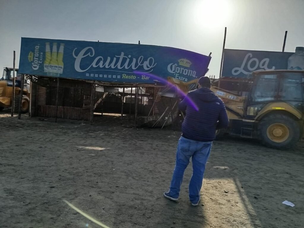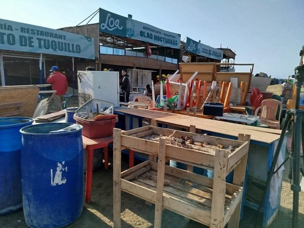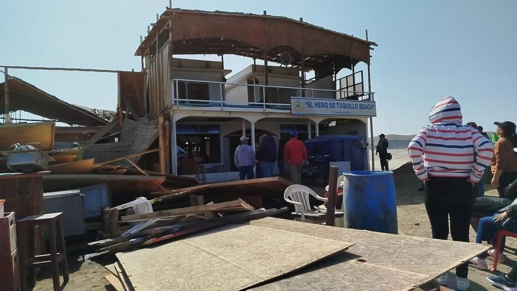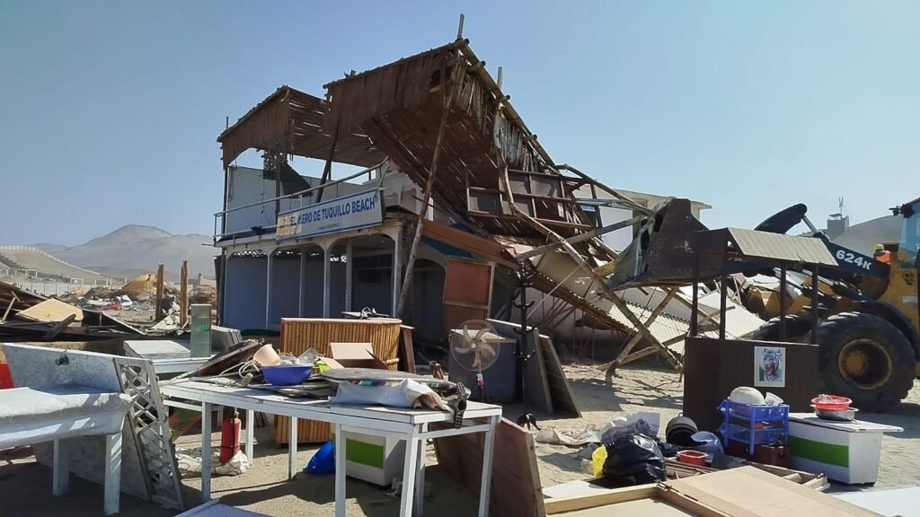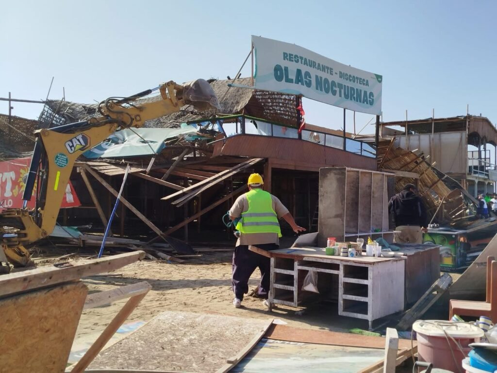 El histórico balneario de Tuquillo, en Huarmey, amaneció distinto. Restaurantes, picanterías, discotecas e incluso una concesión minera quedaron reducidos a escombros tras el operativo de desalojo realizado por autoridades, poniendo fin a décadas de actividad comercial en la zona.