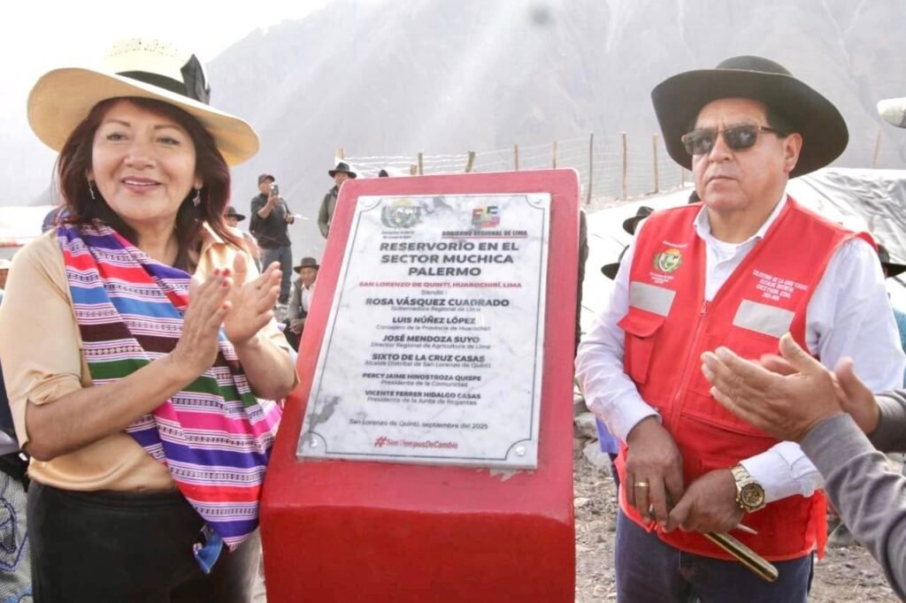La alegría de los agricultores de San Lorenzo de Quinti se hizo sentir con la inauguración del reservorio Muchica Palermo, obra que asegura agua para el riego de los cultivos y el desarrollo agrícola en Huarochirí.