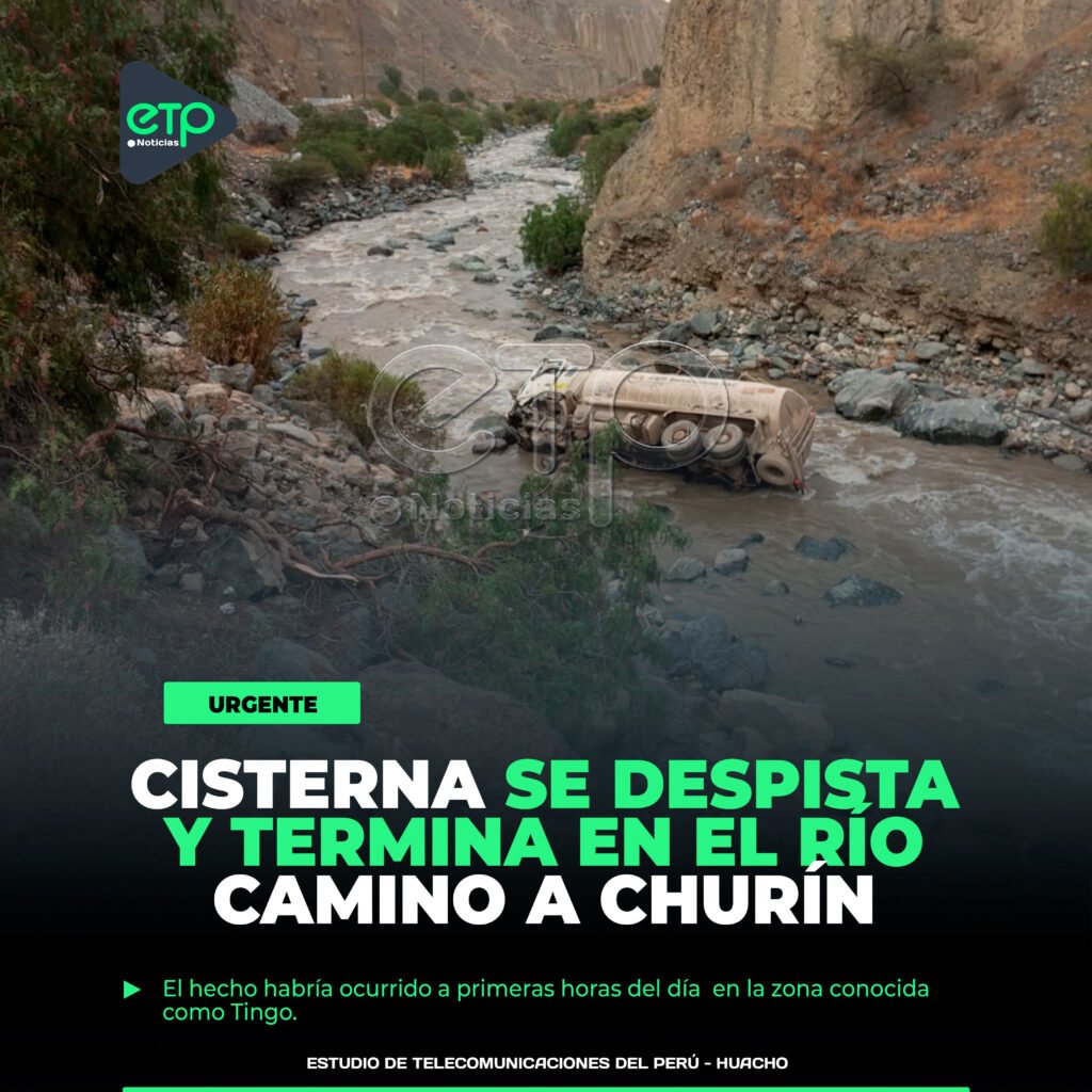 A primeras horas del día, ciudadanos de la zona conocida como Tingo, comunidad Francisco de Huacho, distrito de Pachangara, Churín, reportaron que un camión cisterna se despistó y terminado en el río Huaura.