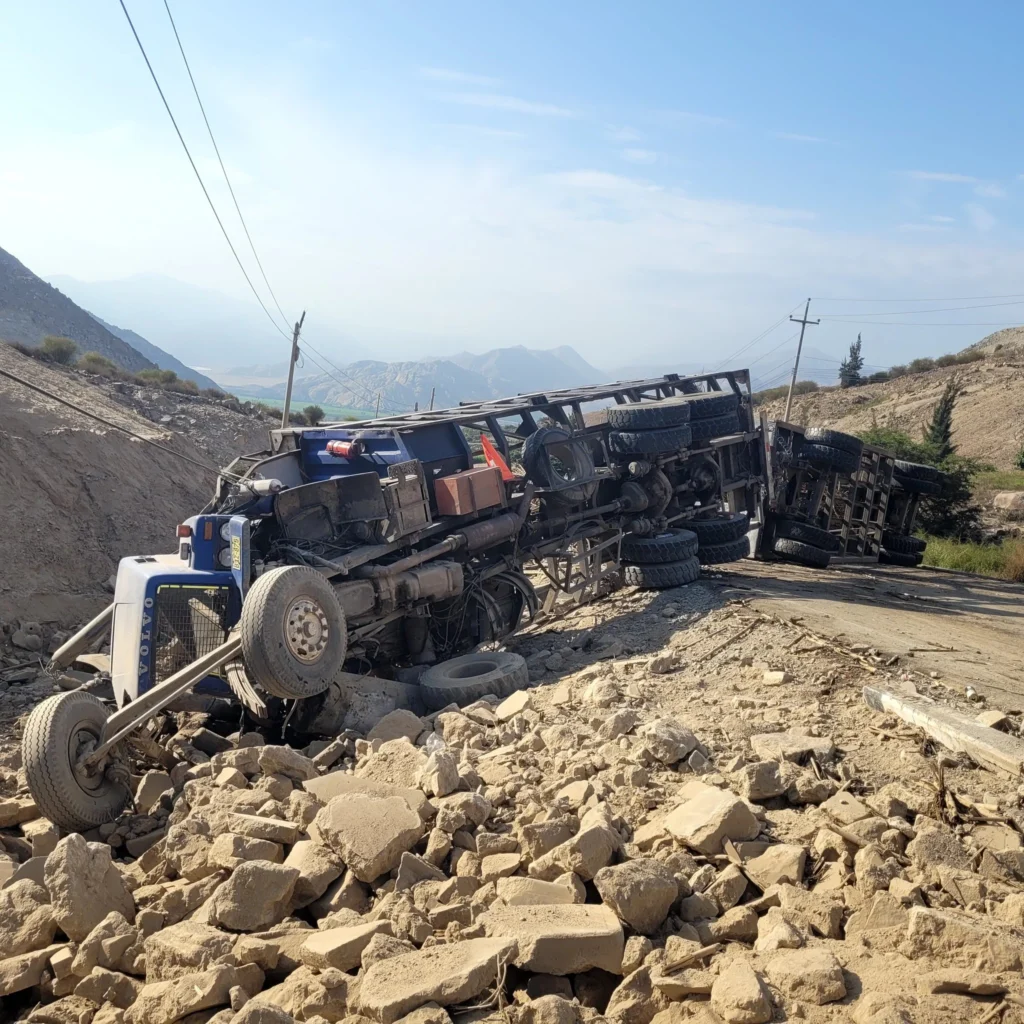 Un tráiler cañero sufrió un despiste en la carretera Río Seco – Andahuasi, a la altura del kilómetro 37, en la zona conocida como Visquira.